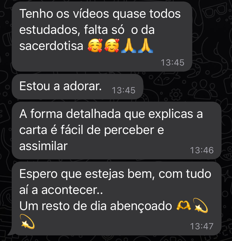 Aqui não aprendes a decorar significados, aprendes a pensar como taróloga e a ouvir o que o tarot te quer dizer.